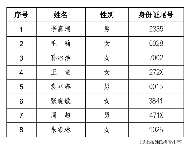 四、面试人员名单
