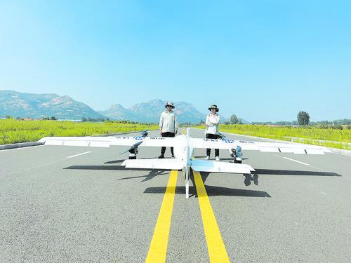 On November 19, a composite wing unmanned aerial vehicle (UAV) with a nearly seven-meter wingspan attracted the attention of numerous visiting experts on the campus of Shandong Vocational and Technical University of International Studies (SWUT). This drone, designed for artificial rain enhancement, was independently developed by SWUT and has already been put into use.
