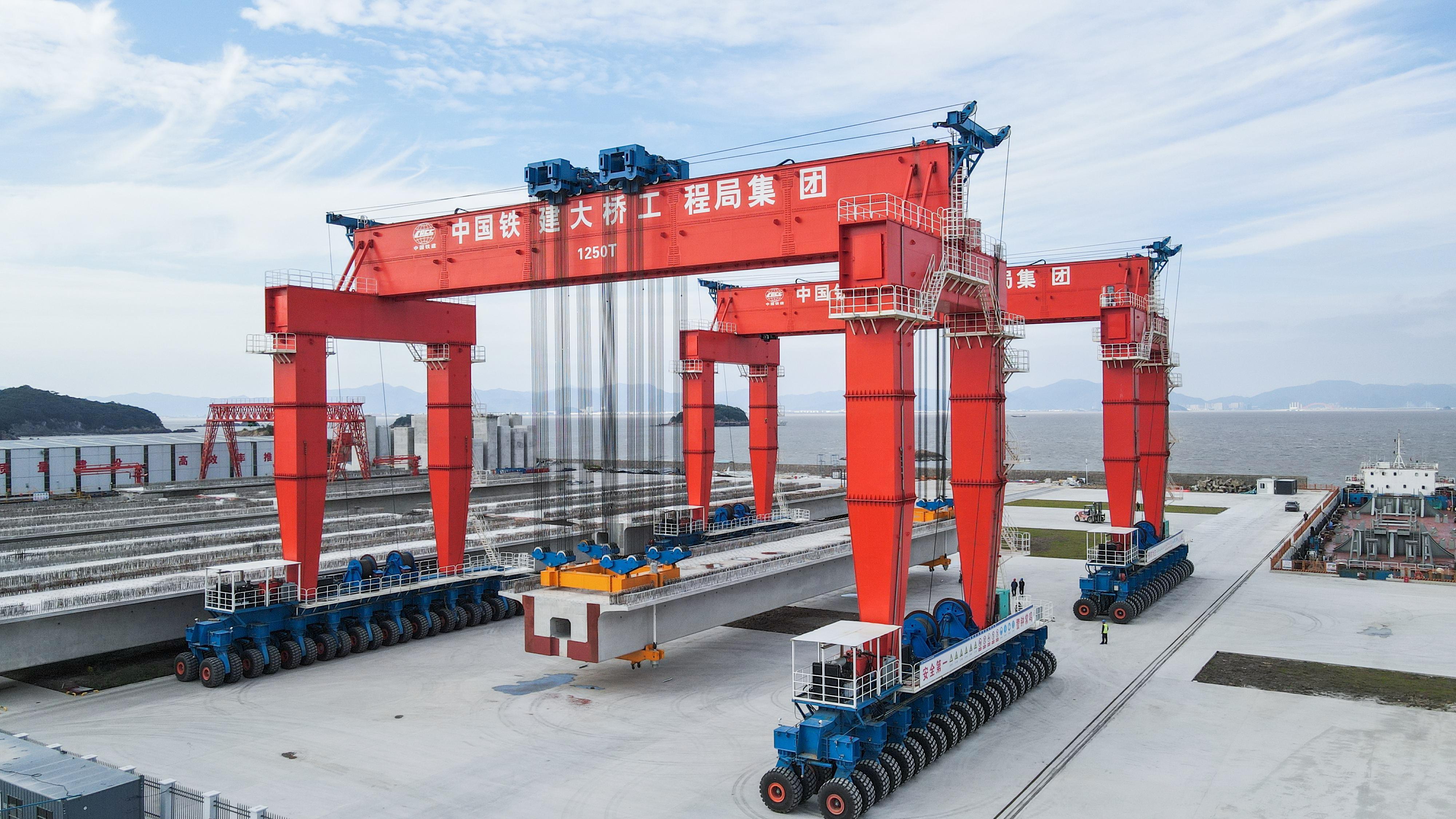 With the support of these machines, the beam yard can transport one box girder every four days. This efficiency has been instrumental in advancing major infrastructure projects, including the second phase of the Ningbo-Zhoushan Port Liuheng Highway Bridge and other world-class cross-sea bridges.