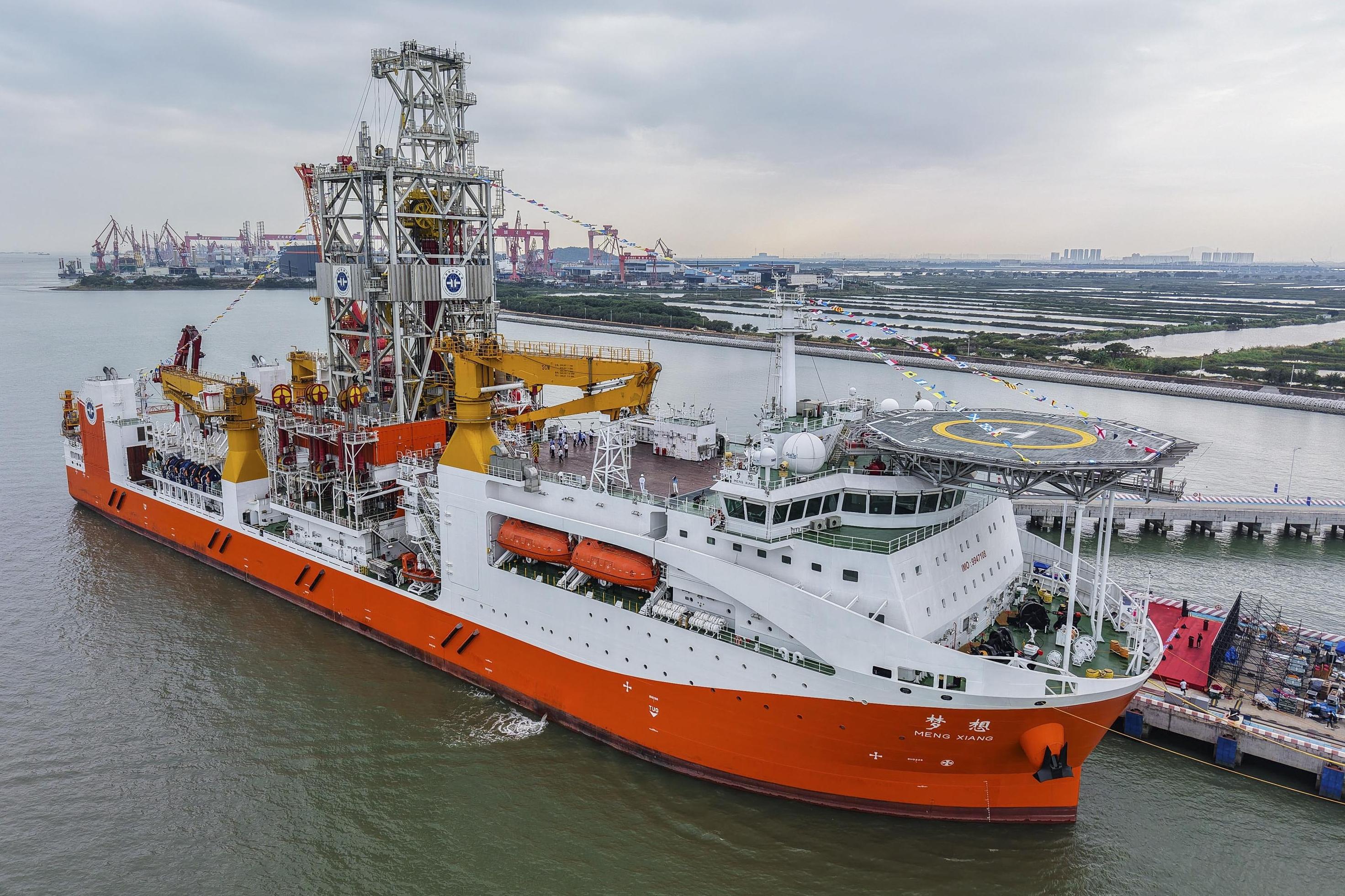 The Mengxiang , nearly 180 meters long and 33 meters wide , can travel 15,000 nautical miles , and self -sustain for 120 days , accommodating 180 people .
