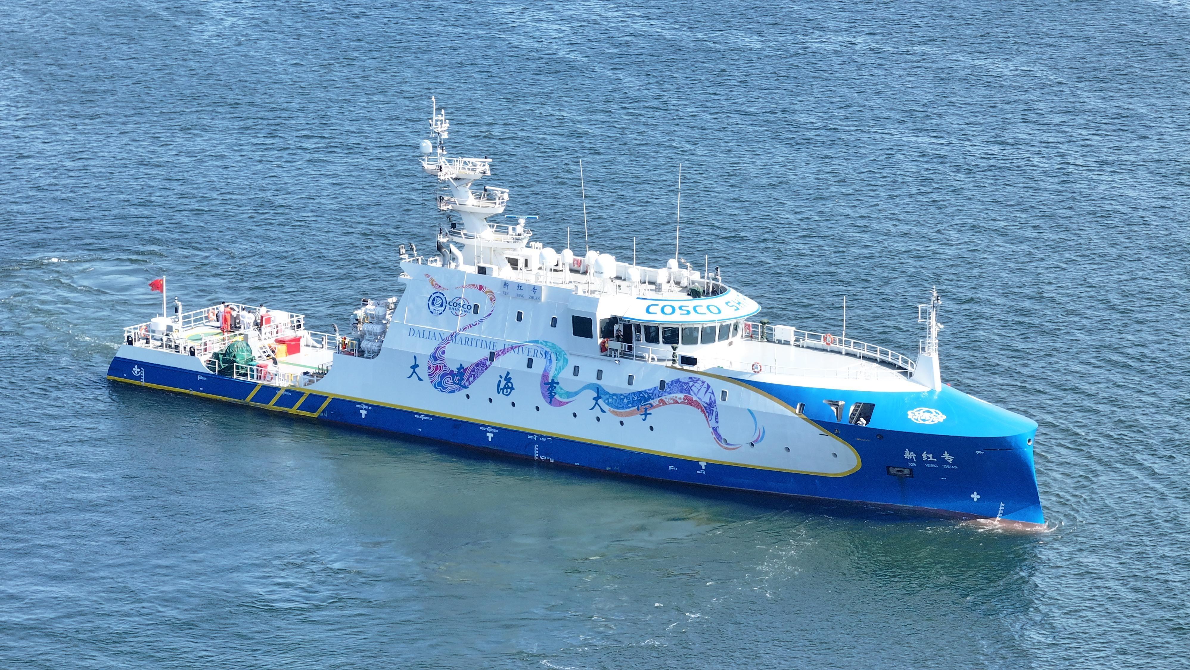 Xin Hong Zhuan, the world's first intelligent ship that integrates remote control, autonomous sailing and teaching practice recently set sail from Dalian, northeast China's Liaoning province. Jointly developed by China COSCO Shipping Corporation Limited and Dalian Maritime University (DMU), the vessel's intelligent capabilities are world leading.
