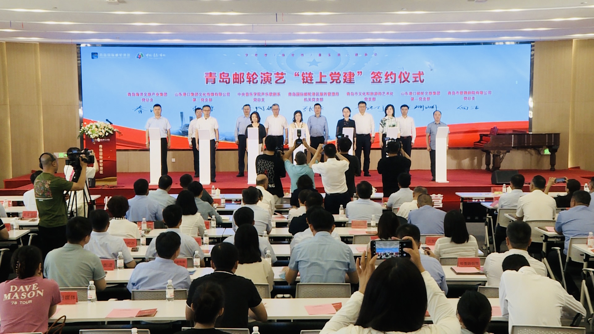 现场还举行了青岛邮轮演艺“链上党建”签约仪式,青岛国际邮轮港区服务管理局机关党支部作为链主单位,与青岛市文化和旅游局艺术处、中央音乐学院声乐歌剧系、山东港口邮轮文旅集团等单位党组织签约,以党建共建为引领,用演艺传播邮轮文化,推动演艺节目上邮轮,讲述中国故事、传播东方文化,做强做大邮轮演艺产业。