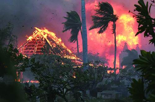 夏威夷拉海纳一场快速蔓延的野火造成了破坏和死亡。图片来源:《自然》网站