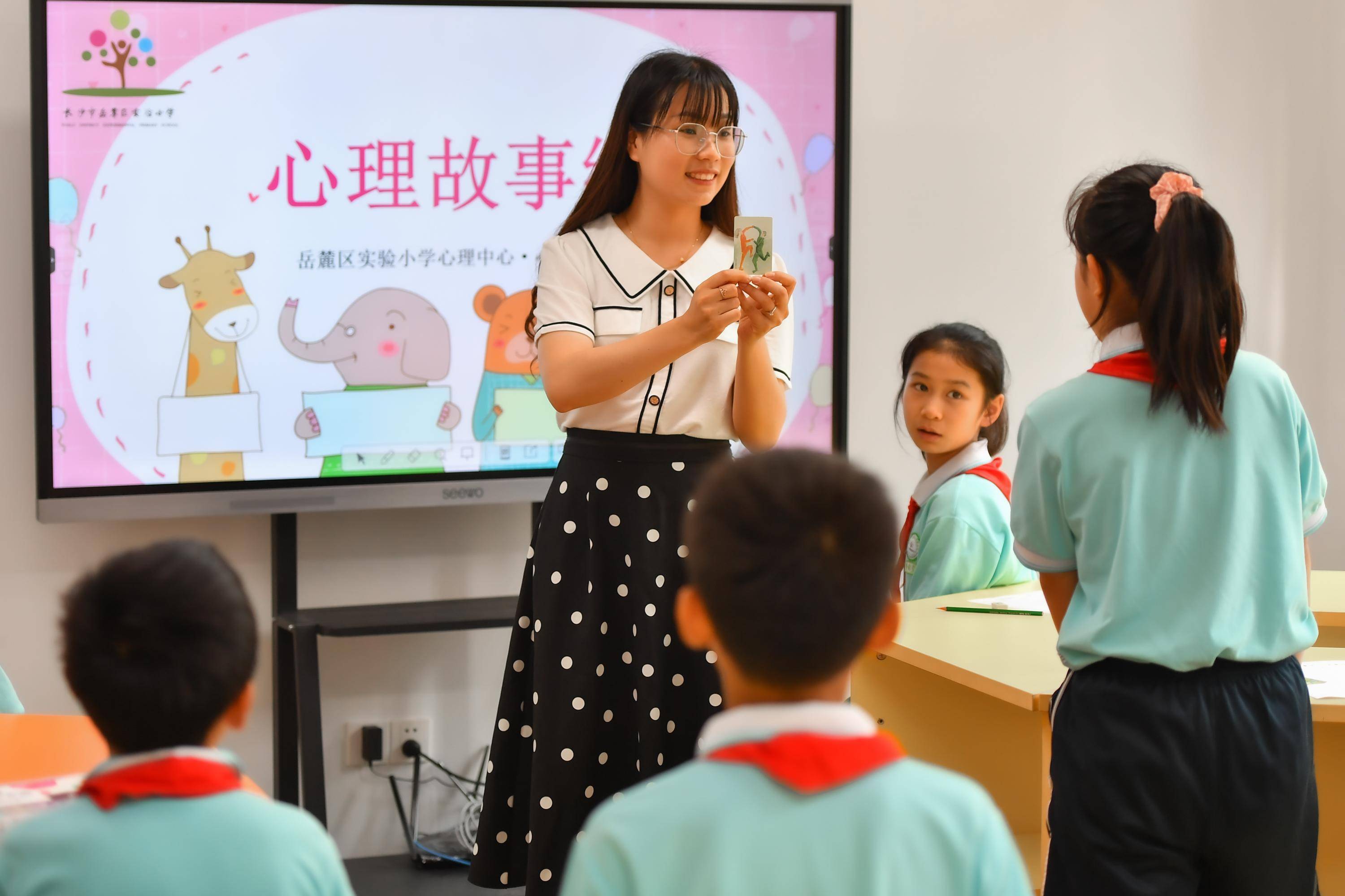 5月31日,在长沙市岳麓区实验小学“心语花溪”心理成长中心的绘画活动室,心理健康辅导老师给学生上“心理故事绘”课程。 新华社记者 陈泽国 摄