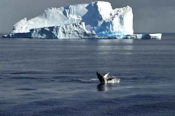 在我国第30次南极考察中,记者曾乘坐“雪龙”号,前往罗斯海恩克斯堡岛开展建站前期准备工作。当时正值南极夏季,天气晴好,罗斯海风平浪静,船航经的海域,时常可见一座座造型各异的冰山漂浮在海面上。有时,平静的海面上会突然出现一阵涟漪,一头鲸鱼在一座巨大的冰山脚下露出海面,悠然嬉戏。