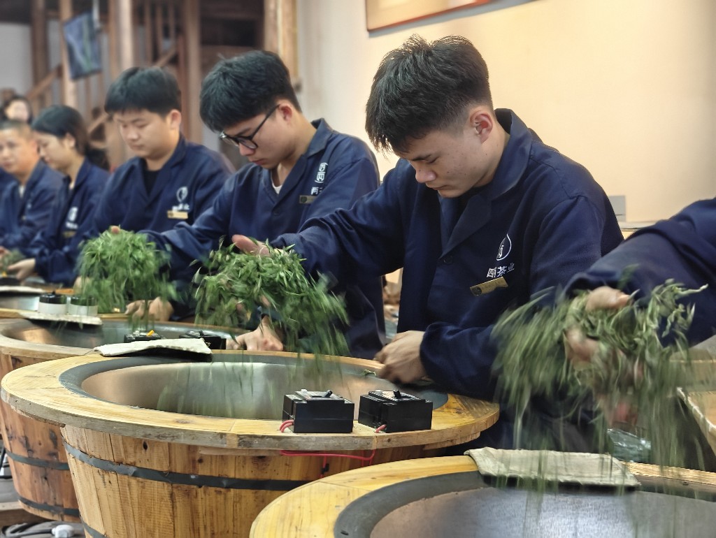 阙杨战是这群年轻人的炒茶师傅,他领衔创办了松阳职业中专茶叶生产与加工专业,负责手工制茶教学工作。每年三至五月的炒茶季,阙杨战便带着学生们走出校门实战炒茶,由此培养了一大批“茶二代”。