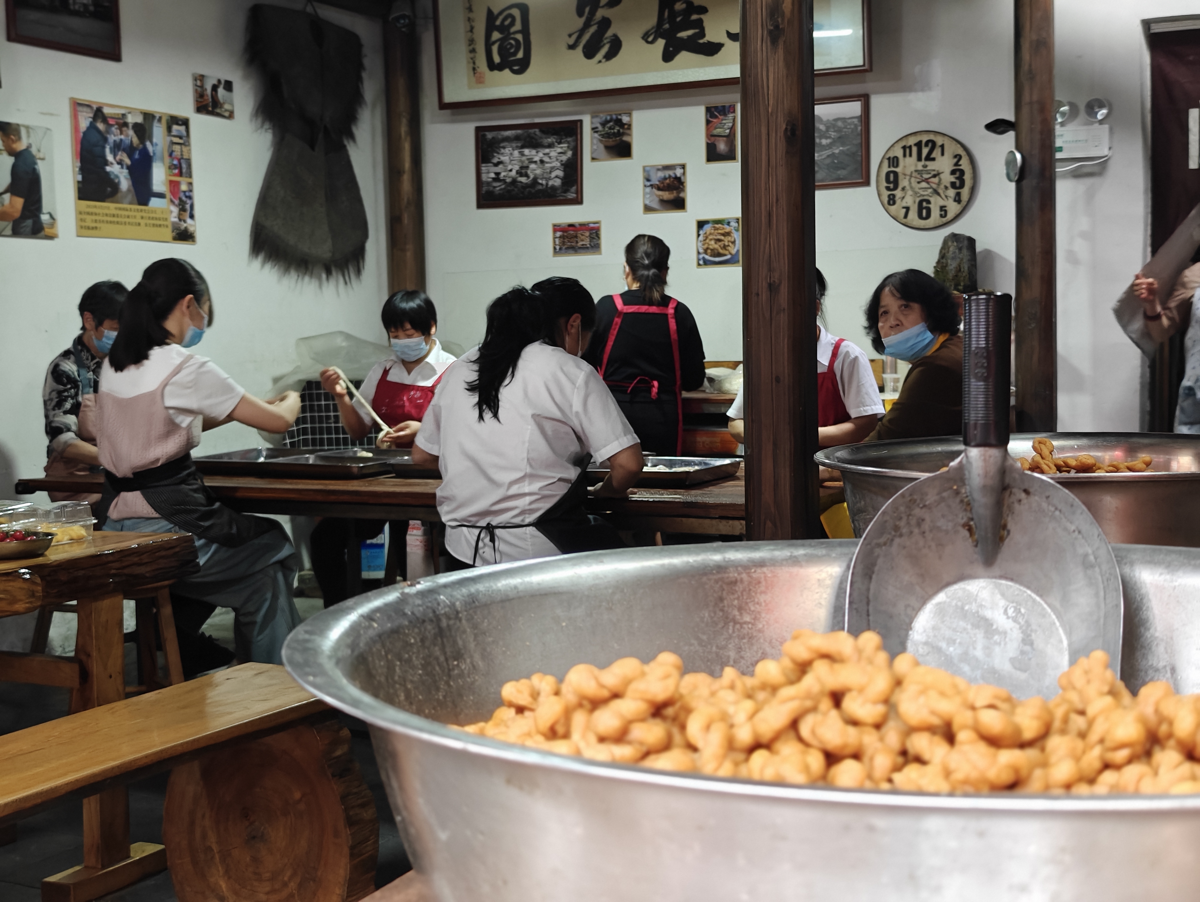4月24日下午,在浙江传统老街——松阳明清古街,一排小年轻端坐在松阳银猴传习馆内,双手不停在上百度高温大铁锅内“出没”。他们不是在练铁砂掌,而是在学习手工炒茶。