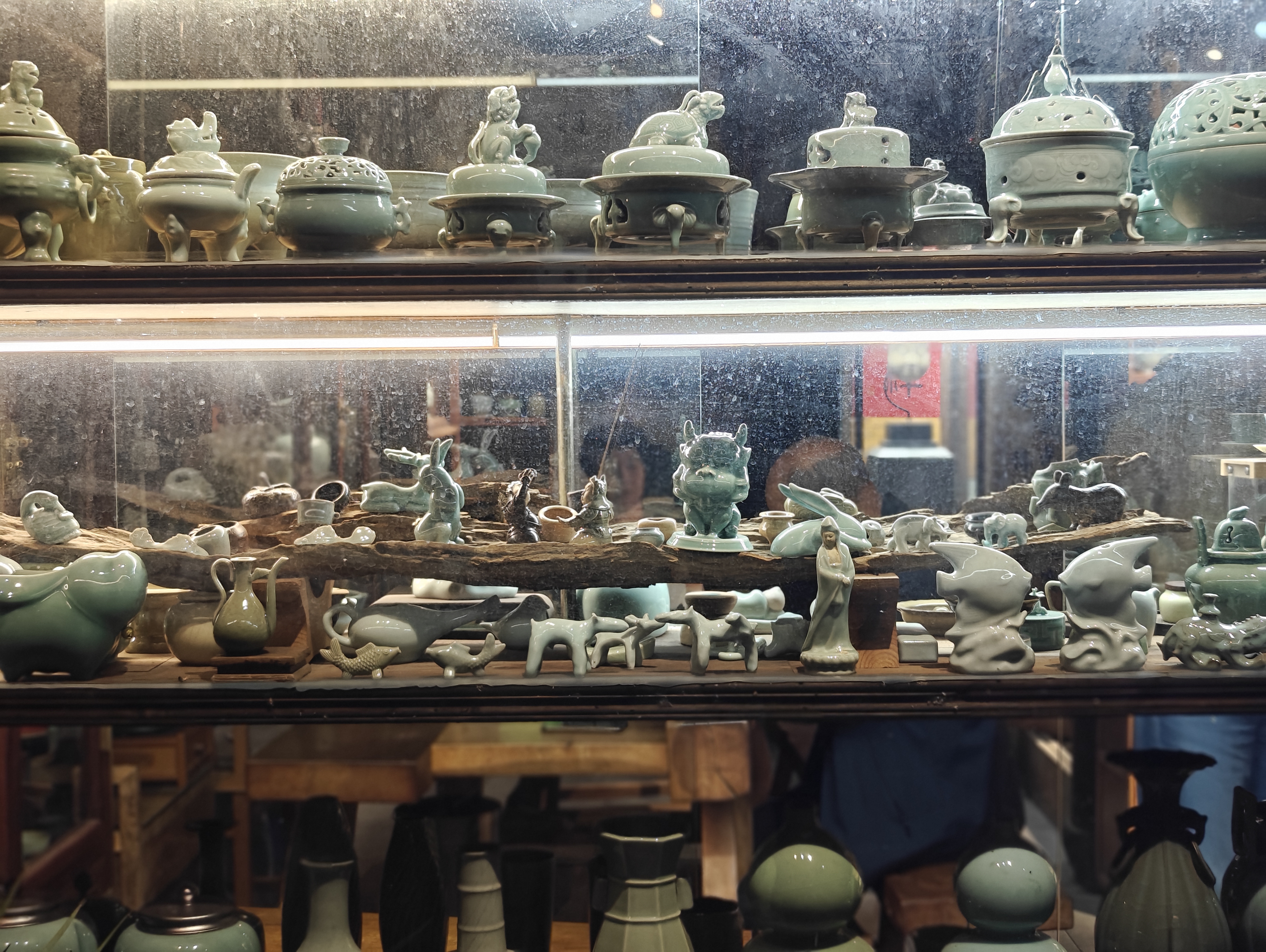龙泉青瓷誉满天下。在浙江省龙泉市千年古街——西街历史文化街区内的古窑里青瓷坊,一件件古法烧制而成的艺术品陈列着,时不时吸引游客拍照欣赏。