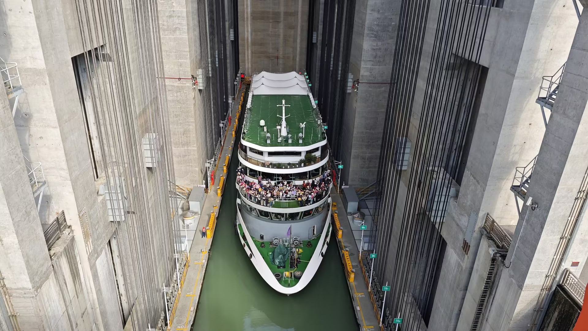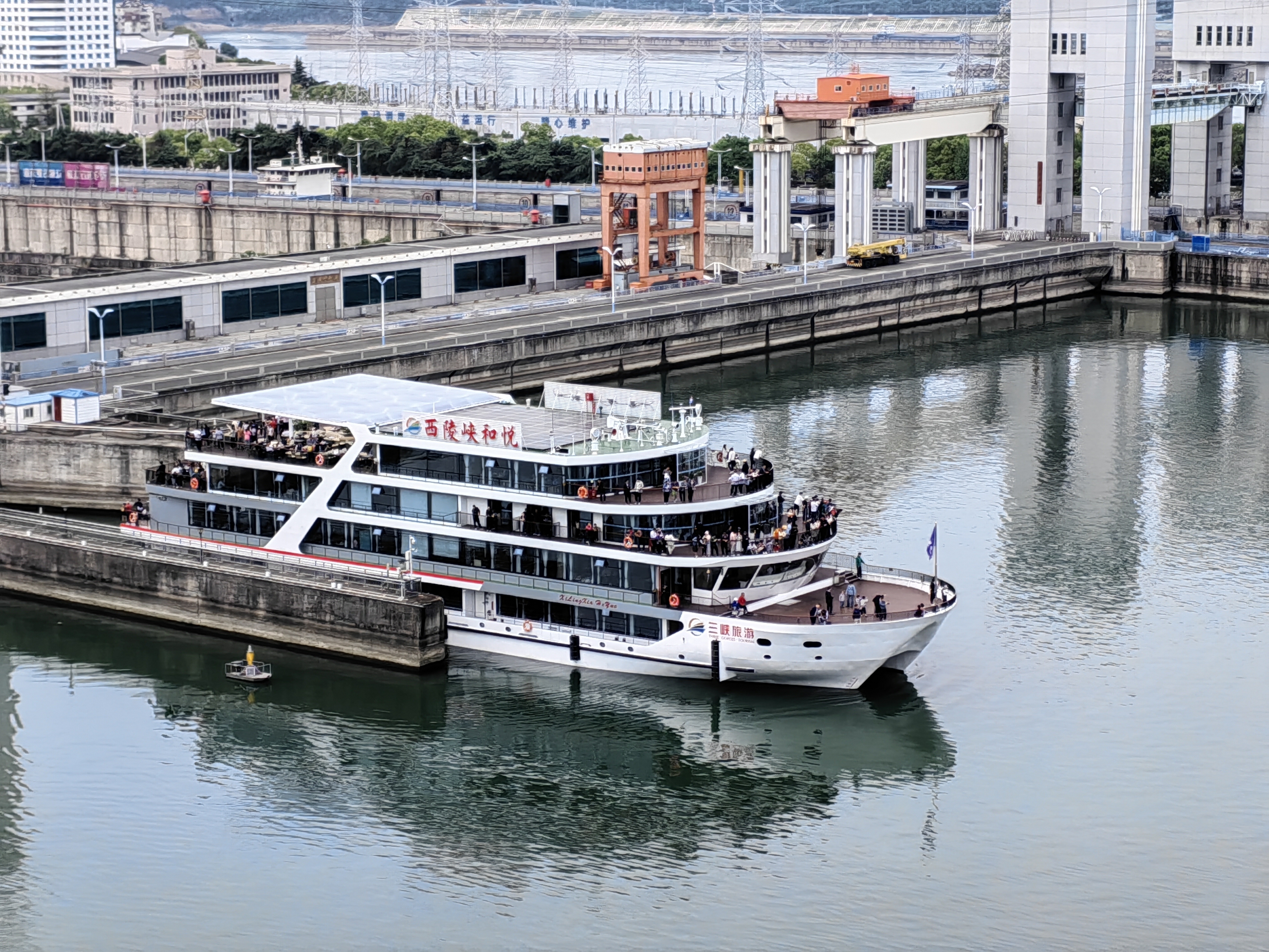 图为“五一”当天旅客打卡“船舶电梯”。三峡局供图