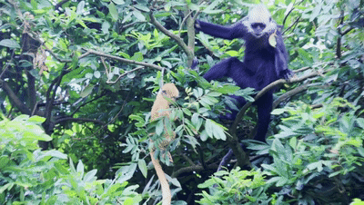 白头叶猴的头部和肩部的毛发是白色的,而且是非常典型的莫西干发型,以植物的叶子为食,因此而得名。