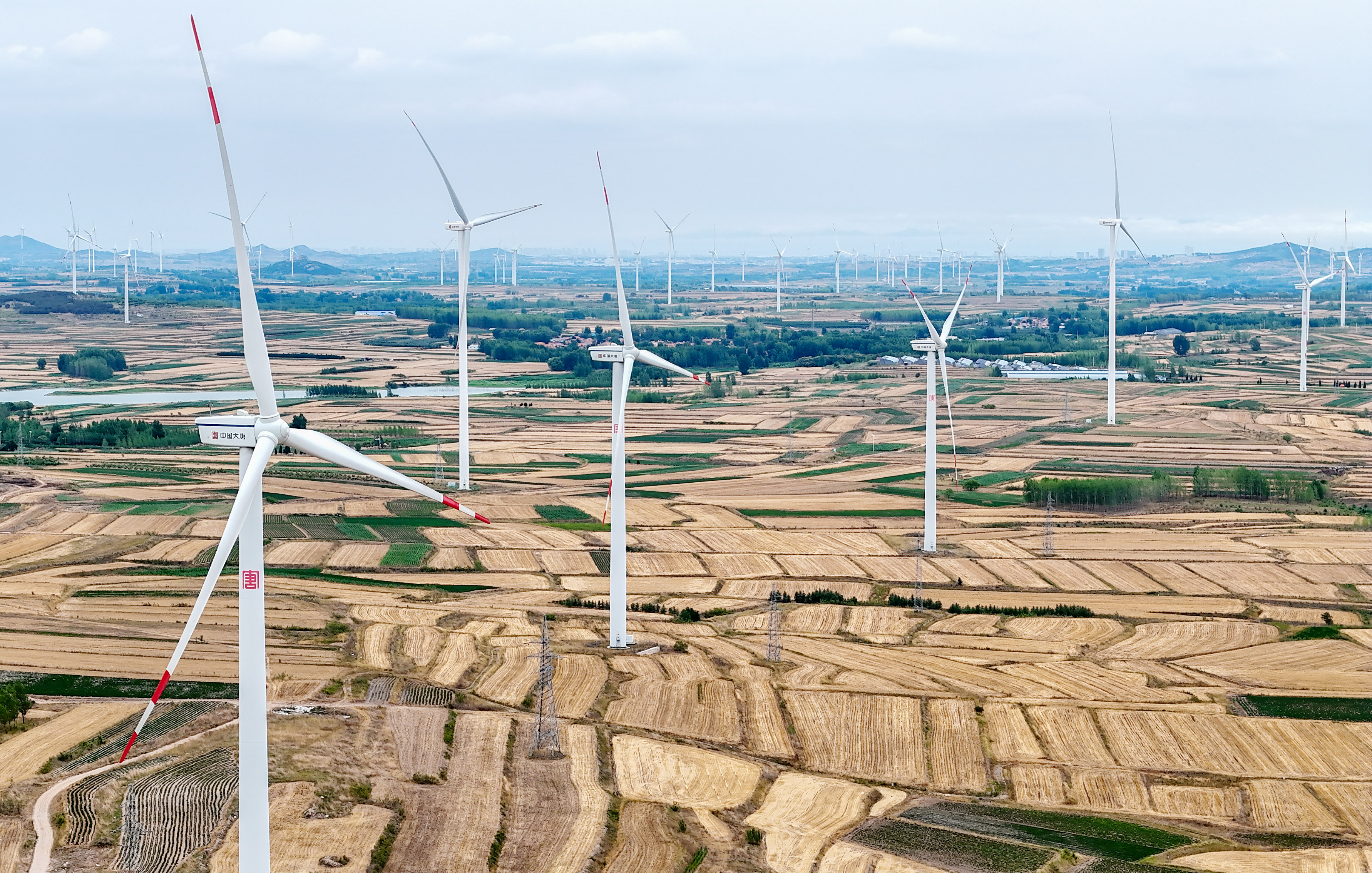 6月21日拍摄的位于青岛西海岸新区六汪镇的风力发电机组。张进刚 摄