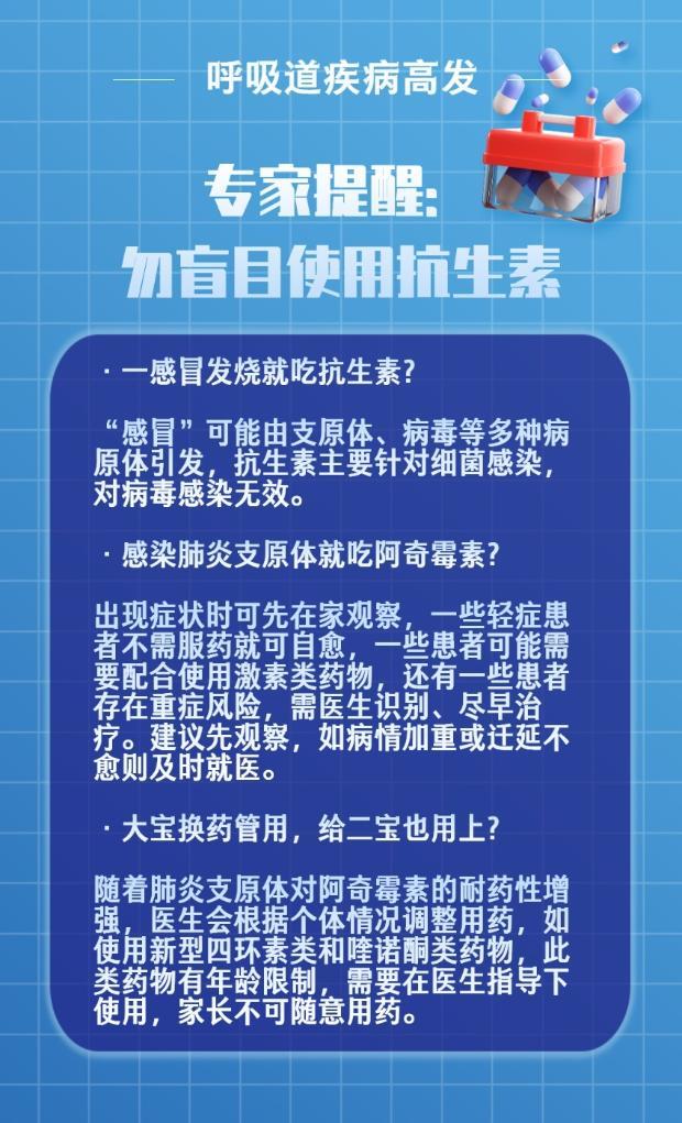 随着气温下降,近期北方多地呼吸道疾病高发,儿童呼吸道感染患者增多。专家提醒,不同病原体引起的感染需要用不同的药物对症治疗,盲目使用抗生素不仅不能起到治疗作用,还可能延误病情。