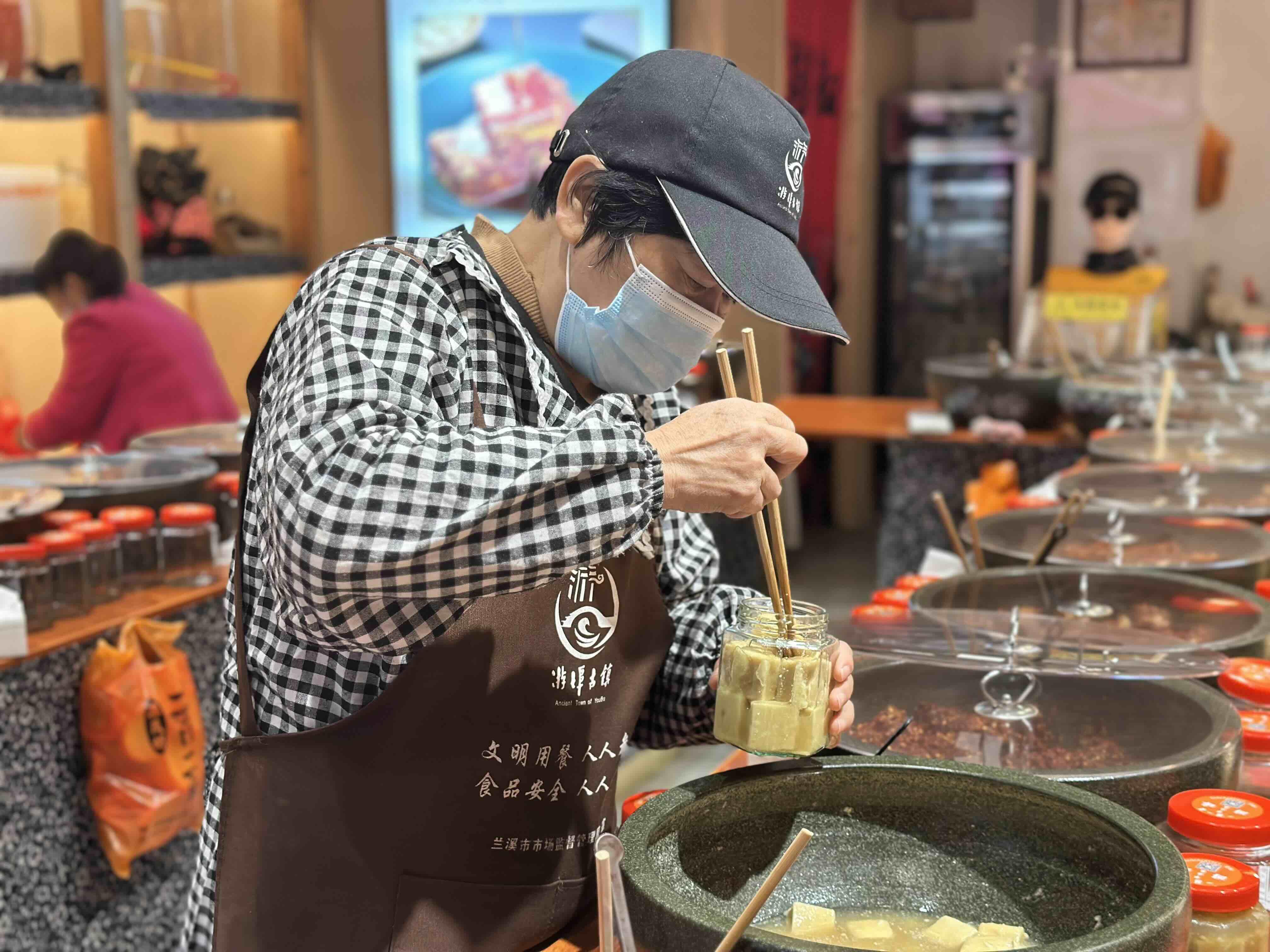 现在,古镇的餐饮业蓬勃发展,38家店铺林立,吸纳500余人就业,从传统小吃到创新美食,应有尽有。小吃虽小,却关乎民生福祉,也能成就一方产业。游埠镇党委副书记蒋有才介绍,为保持“游埠滋味”,政府搭建了小吃食材保供基地,同步链接兰溪本地蔬菜供应链,将农特产品以“订单”形式定点供应至老街餐饮店,美食产业形成了完整链条;同时,规范美食制作标准,对本地传统小吃进行改良创新、提档升级。兰溪市还专门成立美食发展中心,挖掘和发展美食产业,让烟火气升腾不息。