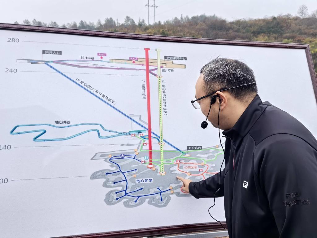 那然生命有限公司运营总监彭耀根介绍,地心世界项目秉承“矿山治理+环境修复+旅游开发”理念,通过对地下老矿区进行综合治理和修复开发,融合温泉资源,利用艺术+旅游的手法,打造国内首家集冒险游乐、健康养生、矿山研学于一体的大型旅游综合体。该项目建成后,有望成为国家废弃矿山修复治理的典范。