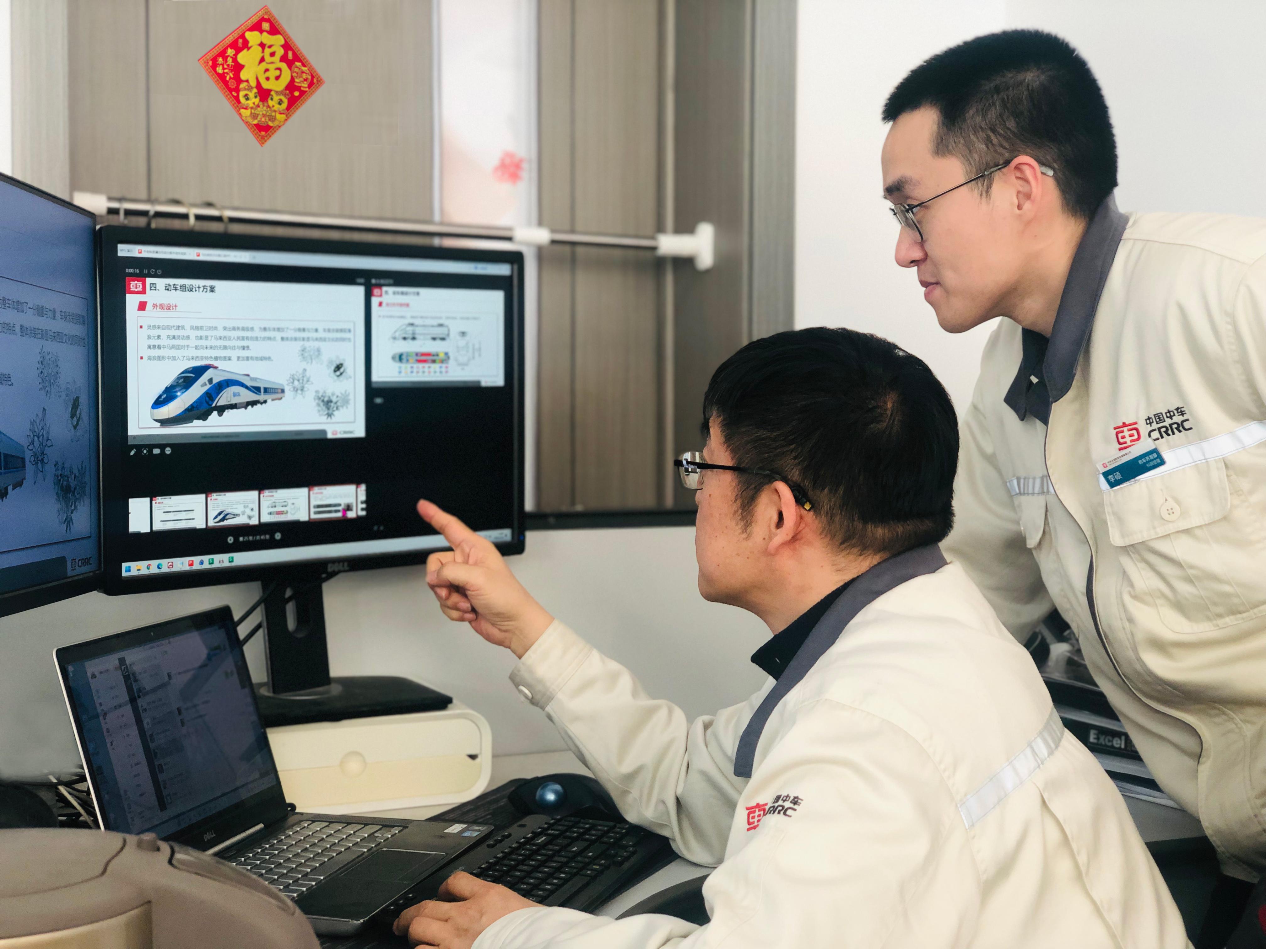 1月31日,大年初三上午,在中车大连机车车辆有限公司机车开发部内,马来西亚东海岸动力集中电动车组项目组主管王松正坐在工位上接电话。“马来文、英文版操作界面再次校核了吗?”“电气部分的技术协议预计什么时候签完?”……项目组讨论着施工设计细节和出图计划。