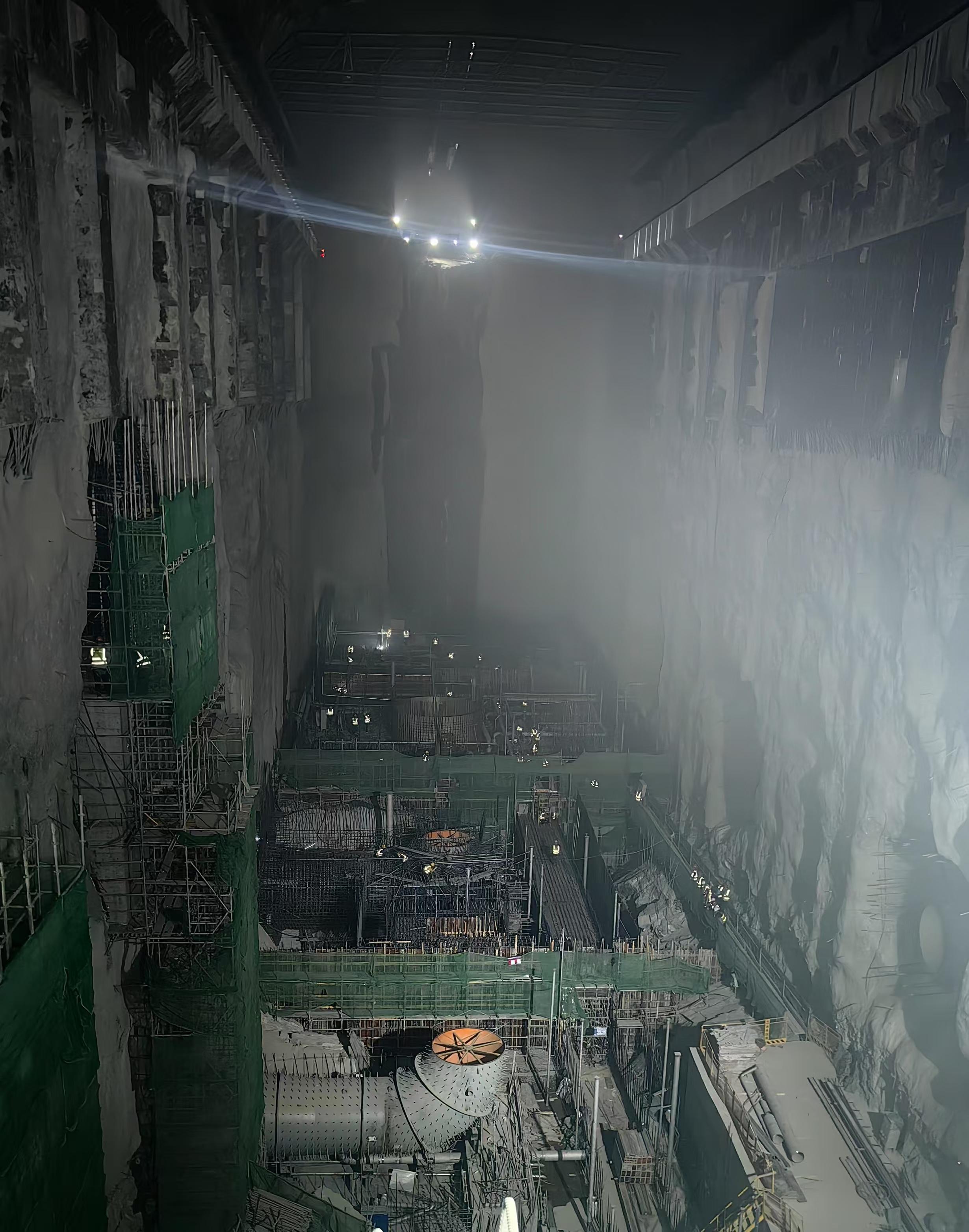 离开下水库,坐上工程车,穿过1600余米的交通洞,记者来到肇庆浪江抽水蓄能电站工程的“心脏”——地下厂房。