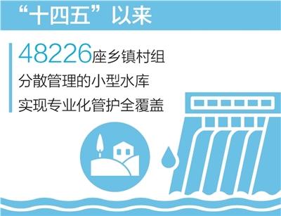 水利部运行管理司司长张文洁介绍:“为有效避免工程‘失养成病’‘久病成险’,我们因地制宜推行区域集中管护、政府购买管护服务、‘以大带小’等专业化管护模式,落实管护主体。其中,‘以大带小’是发挥大中型水利工程管理单位专业技术和人力资源优势,由他们就近代管小型水库。同时,鼓励探索‘小小联合’‘工程保险’等其他行之有效的管护模式。‘十四五’以来,全国48226座乡镇村组分散管理的小型水库实现专业化管护全覆盖。”