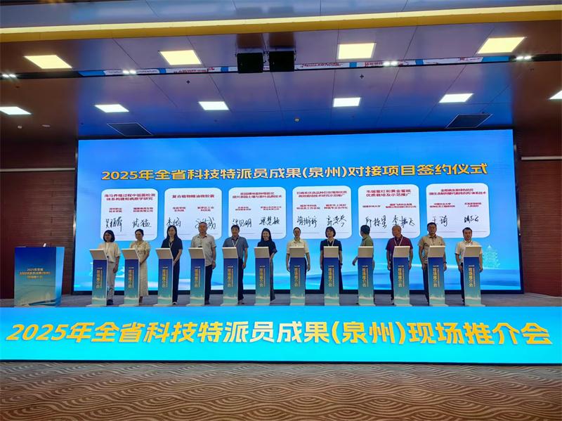 据介绍,现场设置泉州馆、高校科研院所馆、设区市馆3个成果展示区,集中展示了高校科研院所、企事业单位提供的涵盖畜牧水产、农林技术、生物医药等多个领域的104项创新成果。会上,“智能控制立体循环栽培装备”“科技特派团服务洛江区花卉产业链专项”“科技特派团服务泉州南安市大米加工产业链专项”等18个科技特派员对接项目完成现场签约,正式从“实验室”走向“生产线”。来自福建农林大学、集美大学、福建师范大学等8所高校的10位专家学者立足发展所需、聚焦创新所向,现场开展新技术、新品种、新产品成果推介。