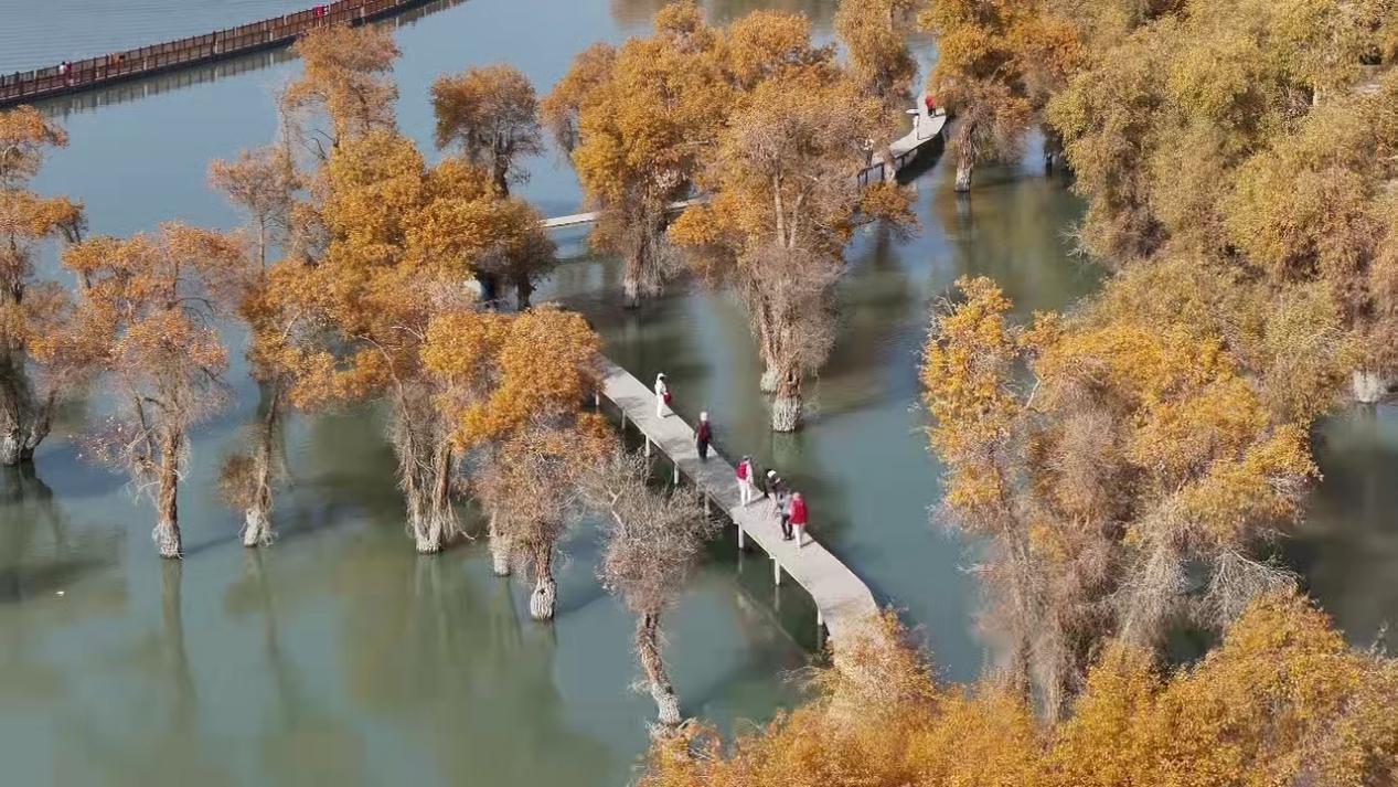 胡杨林的有效保护也带动了整个生态系统的持续向好。近年来,马鹿、野猪、狐狸等野生动物踪迹日渐增多,成为不少摄影爱好者的热门打卡地。摄影爱好者张永红说,相比五年前,现在能拍摄到的物种数量增加了近一倍,这片林子正在恢复它应有的活力。