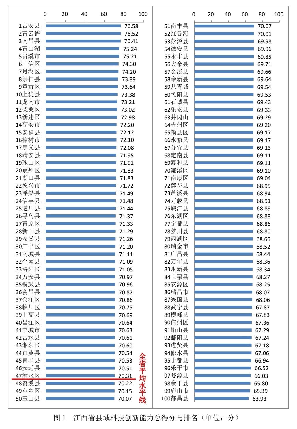 在江西省科技厅、江西省统计局的大力支持下,江西省科学院从2015年开始进行县域科技创新能力评价研究,已连续8年发布《江西省县域科技创新能力评价报告》,通过综合分析江西省统计局、江西省科技厅、江西省市场监督管理局(知识产权局)、江西省科学技术协会等部门采集的数据及实地调研,对全省的县区科技创新能力进行全面综合的系统评价,并提出有针对性的对策建议,为各县(市、区)提升本区域科技创新提供有力的支撑。