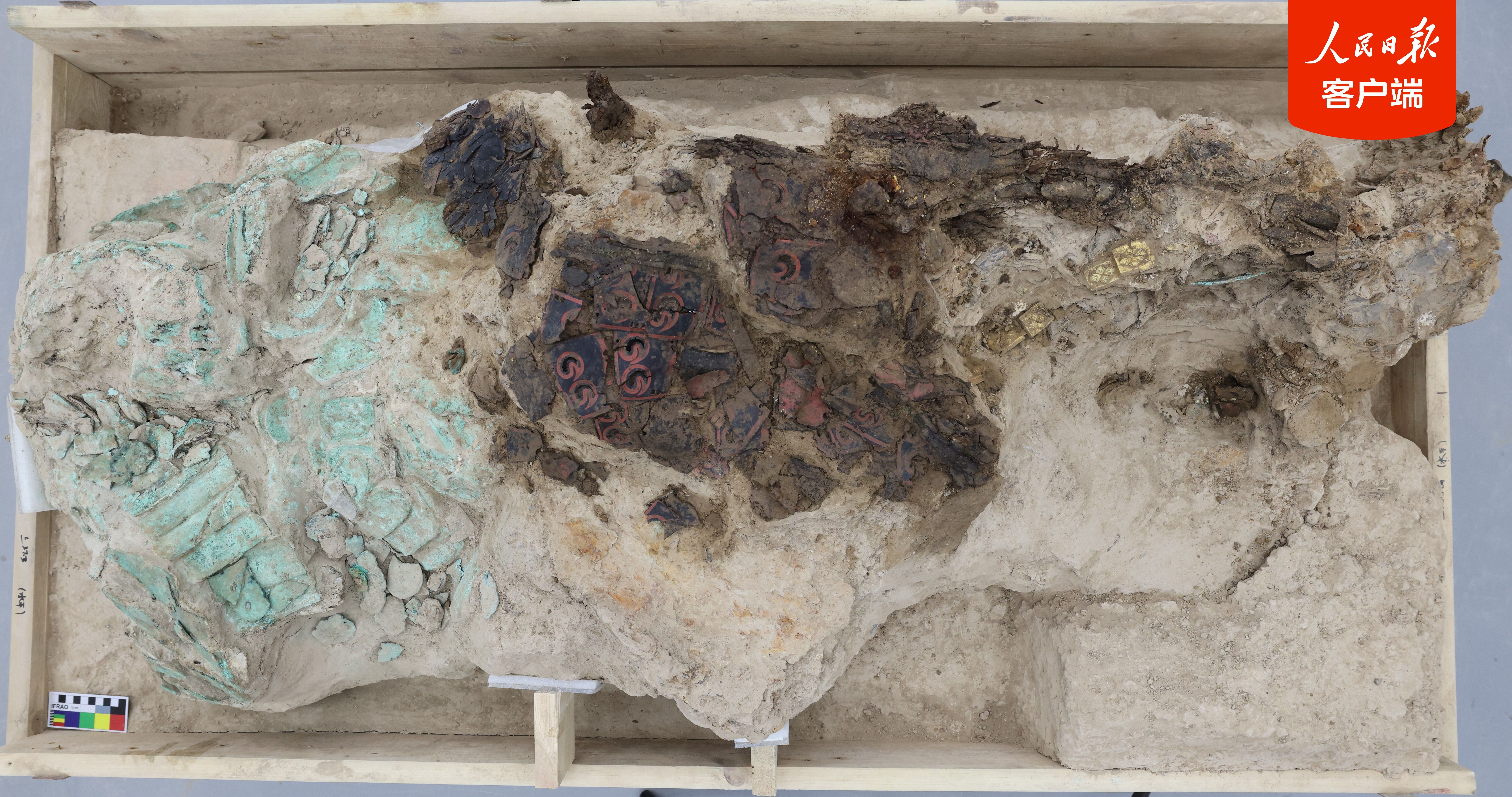 2018血渭一号墓内扰乱严重,堆积杂乱,保存状况较差,研究者通过异地迁移,在实验室内综合运用多学科手段,完成了田野考古接续的清理及记录,有效地保护、修复了脆弱质文物。其中包括目前国内保存最完整的唐代髹漆马铠,目前考古出土的唯一唐代鎏金铜甲、髹漆皮盾,研究者在遗存堆积中一层层提取、一片片梳理,分析每一片甲片的特性,找到它的位置,将零散的甲片编缀成部件,让古老的文物焕发出新的生机。