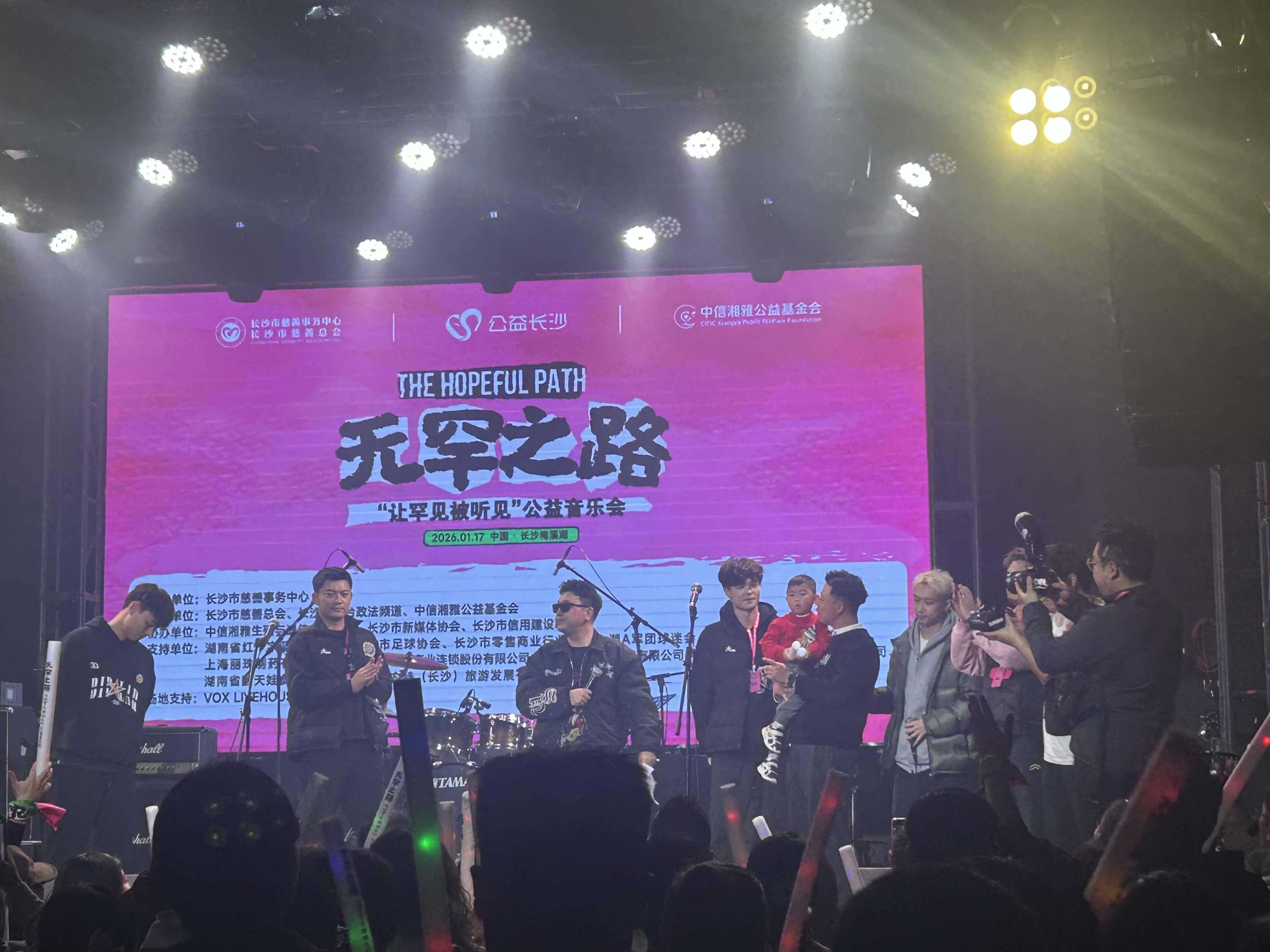 1月17日晚,由长沙市慈善总会、长沙电视台政法频道与中信湘雅公益基金会联合主办的“无罕之路”公益音乐会在湖南省长沙市梅溪湖文化艺术中心Vox Livehouse举行。音乐会贯穿线上纪录片、线下体育关爱与公益演出,创新形式开展罕见病科普宣传,让“罕见”被更广泛、更深入地“听见”与“看见”。