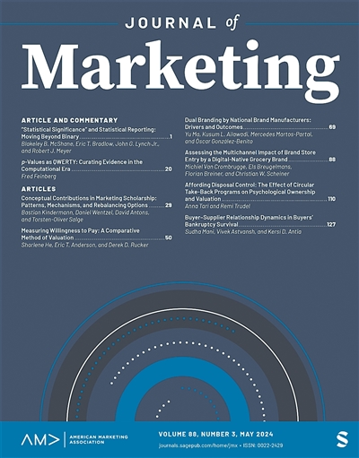 《市场营销学期刊》(JM)是一本与营销领域专家学者息息相关的期刊,是美国营销学会的首本期刊,同时也是营销学领域影响因子最高的期刊。它记录了市场营销理论与实践的不断创新,见证了营销理念在推动商业发展和社会进步方面所发挥的巨大作用。