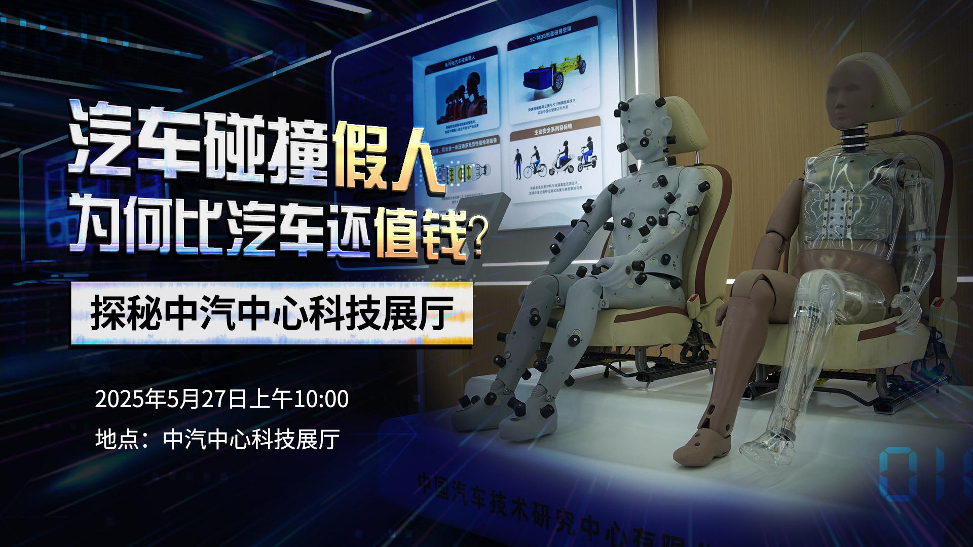 汽车碰撞假人为何比汽车还值钱?为什么要设计“中国体征假人”?一辆汽车安全上路前需要经过哪些严格检测?汽车智能化的今天,我们又该如何守护汽车信息安全?5月27日上午10:00,科技日报带您走进中国汽车技术研究中心科技展厅,探秘那些守护行车安全的“秘密武器”。