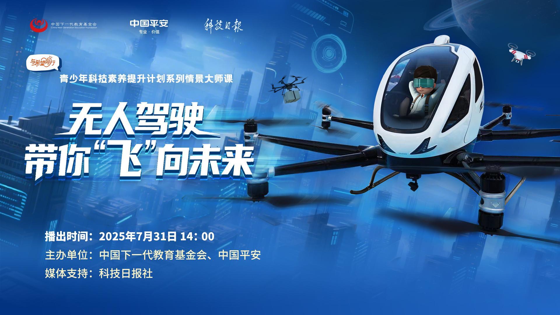 无人驾驶垂直起降航空器你体验过吗?空中通勤、低空观光、高空灭火、快递配送……“低空+”正在赋能千行百业。7月31日14:00,青少年科技素养提升计划系列情景大师直播课带您走进亿航智能,一起领略正在走向现实的未来黑科技。