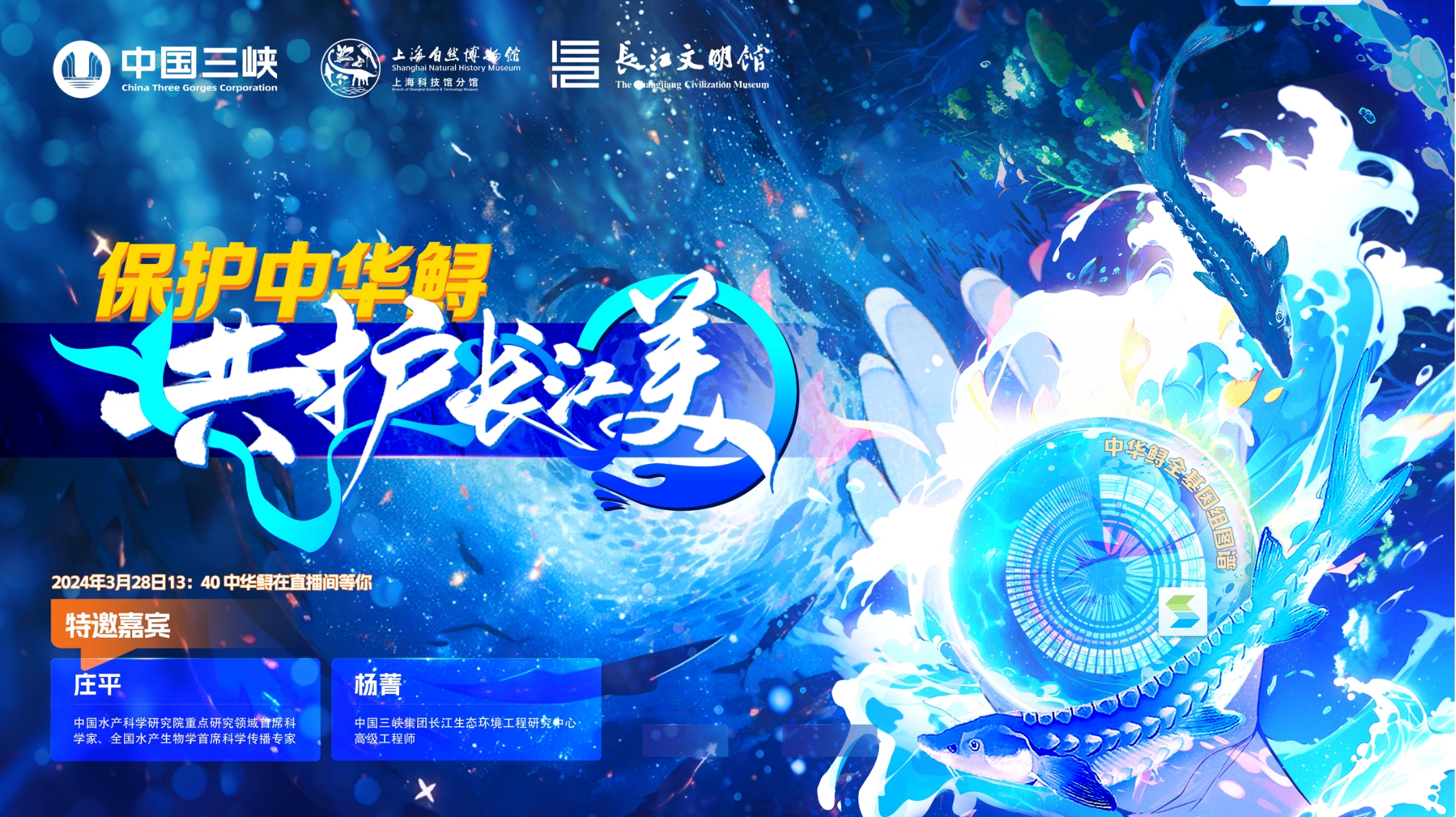 三峡集团与上海自然博物馆、武汉自然博物馆联合直播,共同带你感受中华鲟回家之旅,见证中华鲟归江。3月28日13:40,敬请关注!