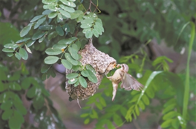 中华攀雀在河北省唐山市丰南区沿海湿地育雏。新华社记者 杨世尧摄