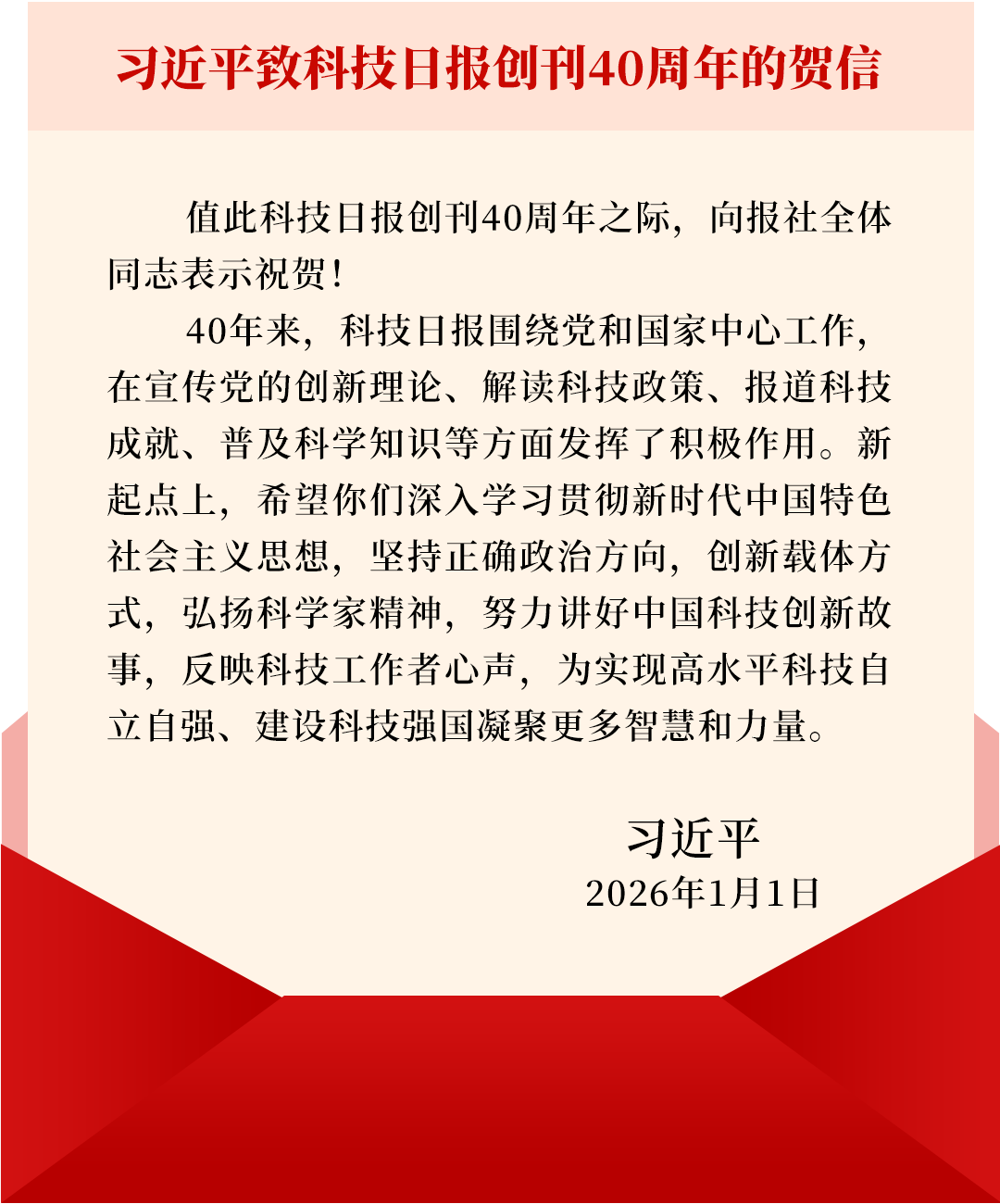 新华社:习近平致科技日报创刊40周年的贺信